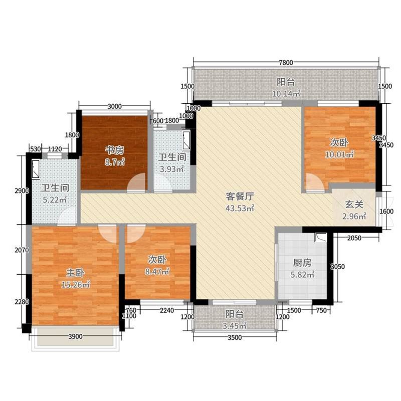 户型4室2厅2卫0厨1阳台